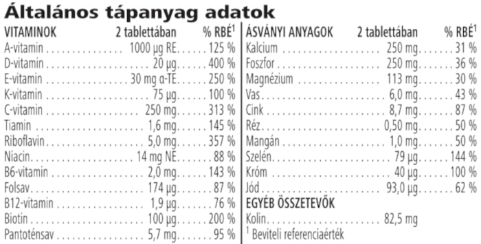- Optimális mennyiséget biztosít 24 kulcsfontosságú tápanyagból, amelyekre a szervezetnek szüksége van